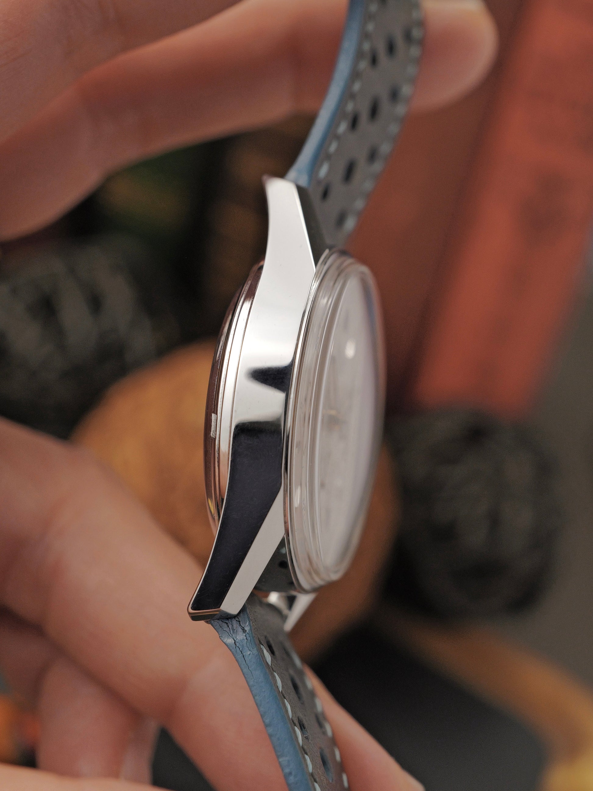 A Carrera with the dimensions, proportions and materials of its legendary 60s Heuer 2447 muse, but with 90s reliability and build quality. Most reissues are “modernised” with proportions that ruin wearability and elegance but this once, TAG Heuer stayed faithful paying tribute to the racing chronographs directly liked to 60s F1 and motorsports. Can you imagine the fights in the TAG boardroom when they dropped the 1980s parent company and signed this Heuer-only? The only visible difference is that “Carrera” was also dropped, as there were questions about Porsche’s trademark in the 90s. We love that they updated the movement from the original (and defunct) Valjoux 72 to the Lemania 1873 (same base as the Omega Moonwatch of the era), lending to the availability of spare parts unlike the original. Perhaps the best reissue done by any brand and a beautifully understated chronograph with deep history. In spectacular condition, full set, overhauled in 2022 and fitted with a bespoke handmade strap!
